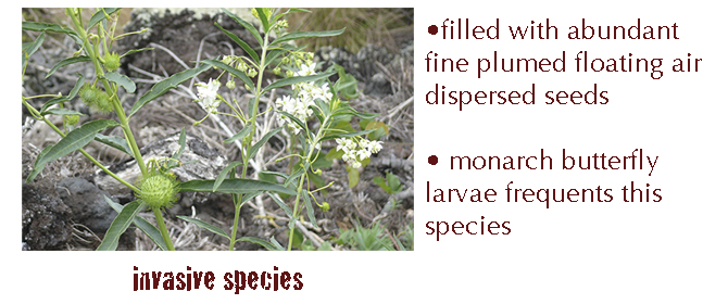 Balloon plant spreads quickly once it matures to produce seeds. Within the ball pods are hundreds of fine feathery seeds that are easily airborne to spread further downwind. It is best to pull this plant out by the roots before the seedpods mature so they don’t multiply and quickly spread. Be sure to wear gloves as with all weeding. This is a milkweed that exudes milky latex. It is also favored as a food source by the larvae of monarch butterflies, so better to pull them before cocoon season.